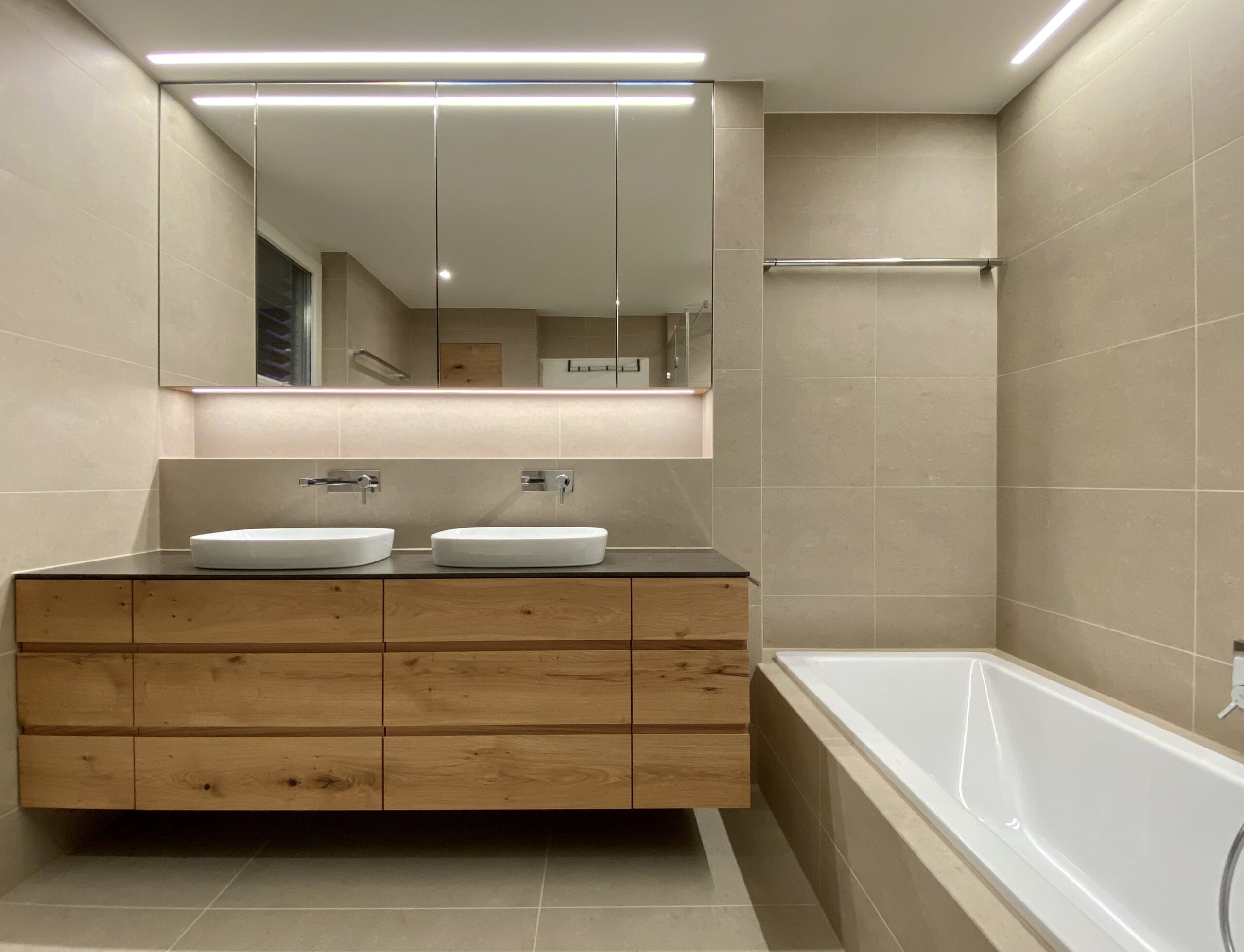 Ein Badezimmer soll nicht nur praktisch sein, sondern sich wie eine persönliche Wohlfühlzone anfühlen. Mit hochwertigen Materialien, stimmigem Licht und sorgfältig abgestimmten Farben gestalten wir individuelle Bäder, die inspirieren und entspannen.