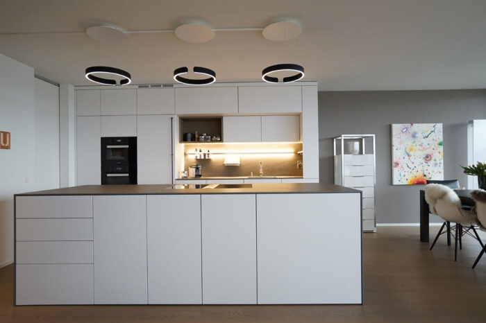 Zurück Küchen Renovation FI Wollerau Ausführung von Küche.Material: Dekton Kira, Strukturlack.Aluduro Titan. Entwurf: Reto WeissFarbgestaltung: Lila LenzlingerFotos: Reto Weiss