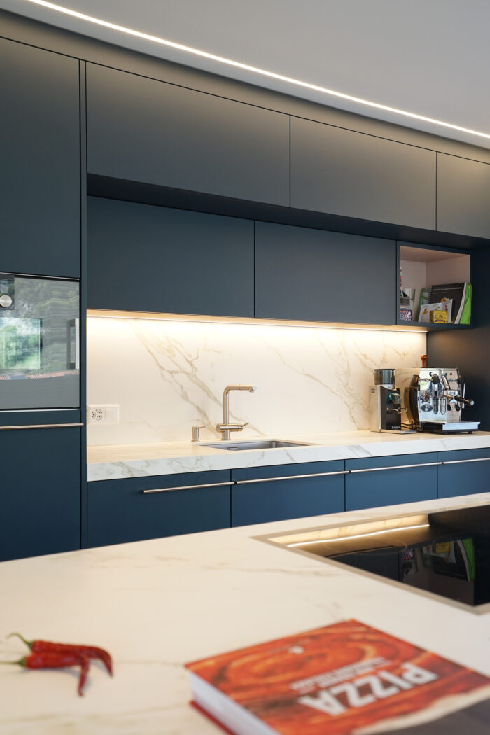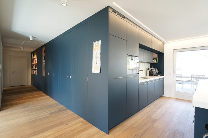 Zurück Küchenumbau / Renovation Riddes Ausführung von Küche, Entréebereich, Bad,Material: Neolith Estatuario,Strukturlack, Eiche Entwurf: Reto WeissFarbgestaltung: Anette RoserensFotos: Reto Weiss