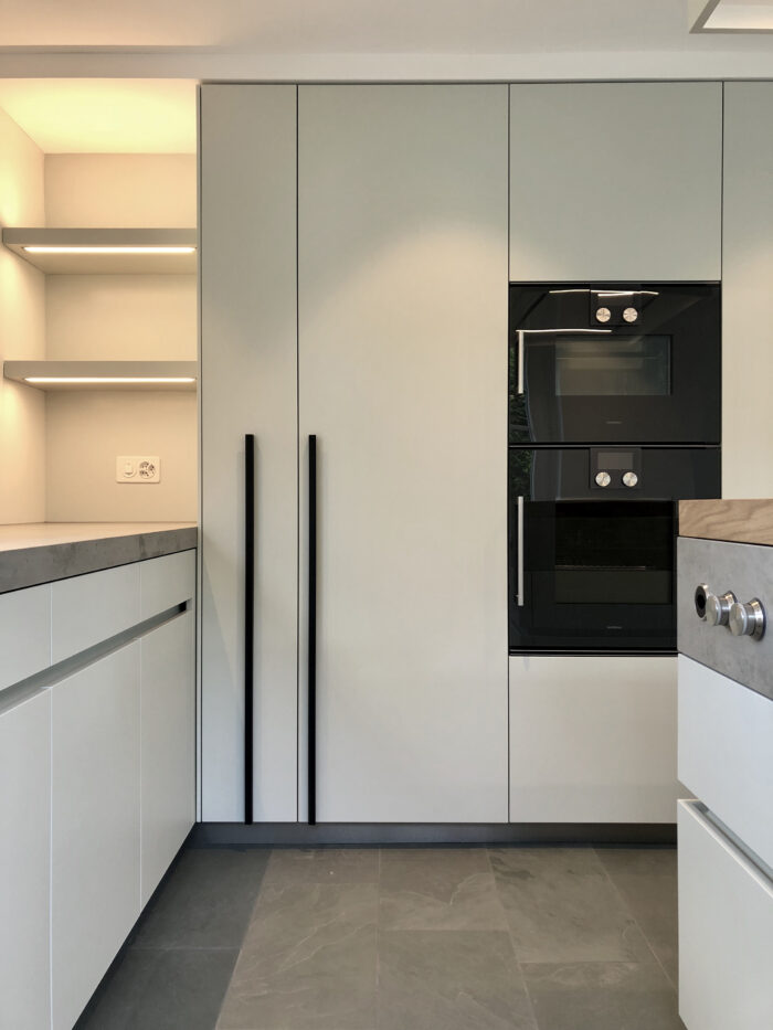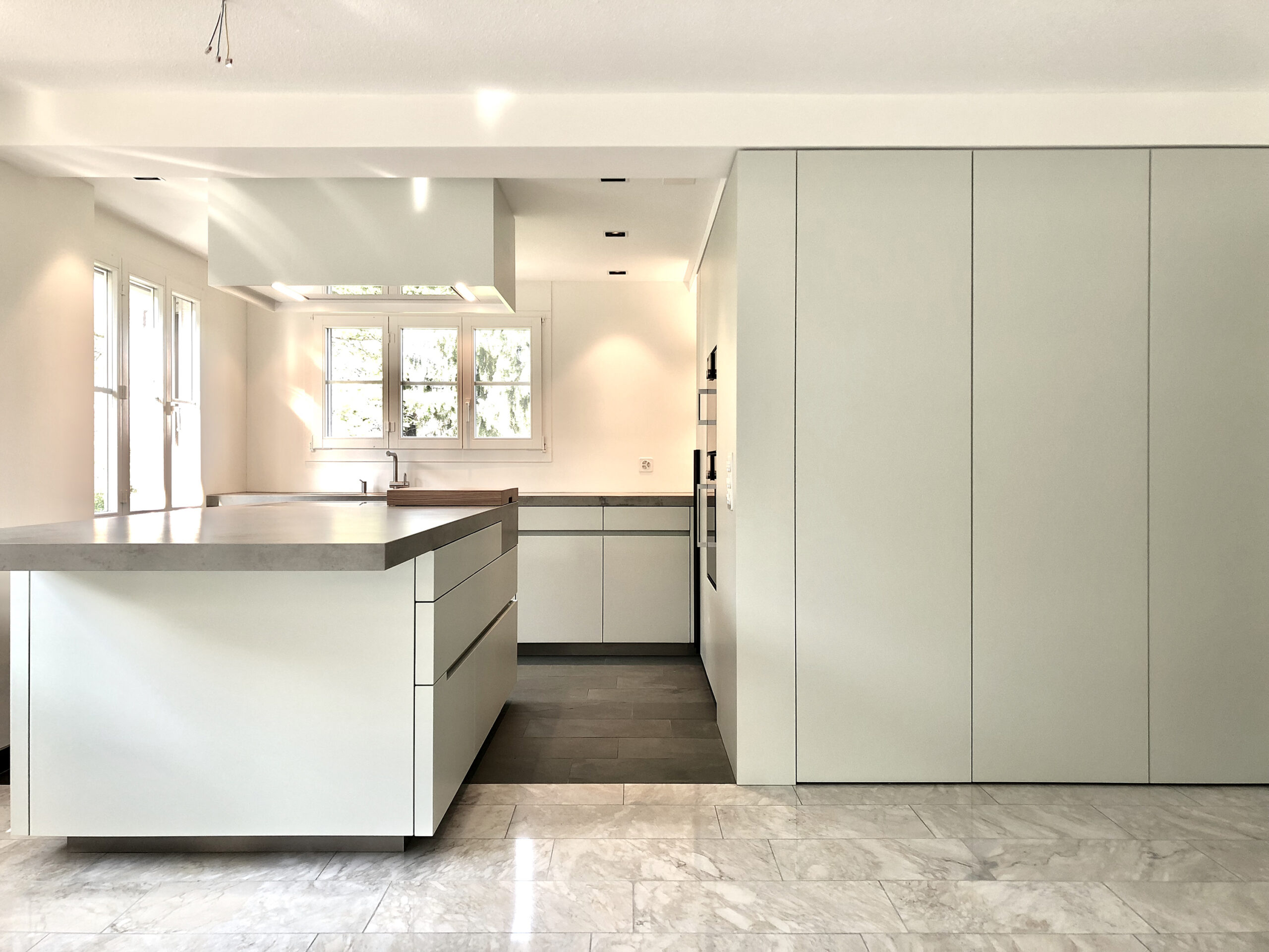 Zurück Küchenumbau Rüschlikon usführung von Küche, Entréebereich, Ankleide,Material: Neolith Beton, Strukturlack. Entwurf: Reto WeissFotos: Reto Weiss