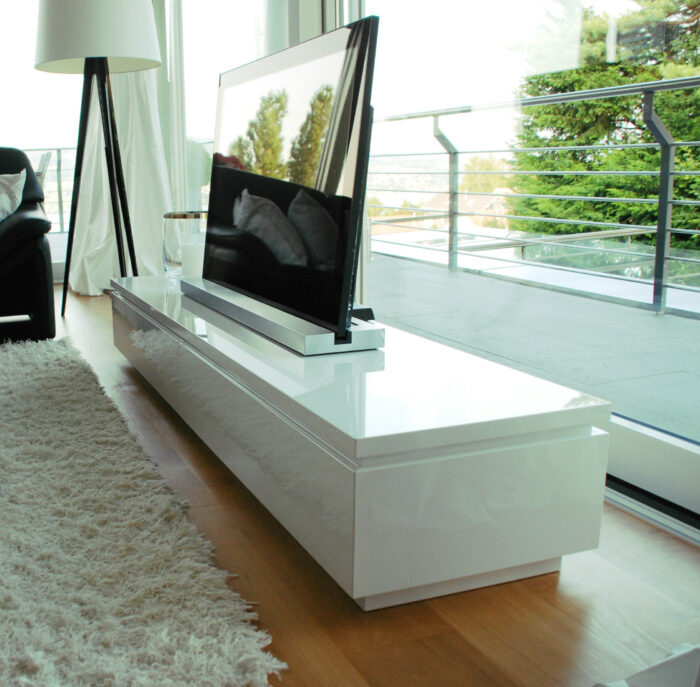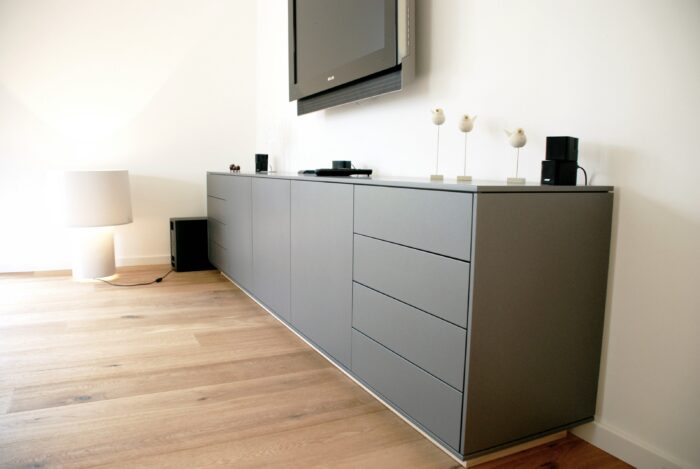 Sideboard Kollektion. Die Apollos sind in drei Breiten und drei Höhen erhältlich. Spezialbreiten auf Anfrage möglich. Wahlweise kann das Möbel mit Schubladen, Türen, Klappen und Schieber ausgestattet werden. Auch stehen Kabeldurchgänge zur Option.