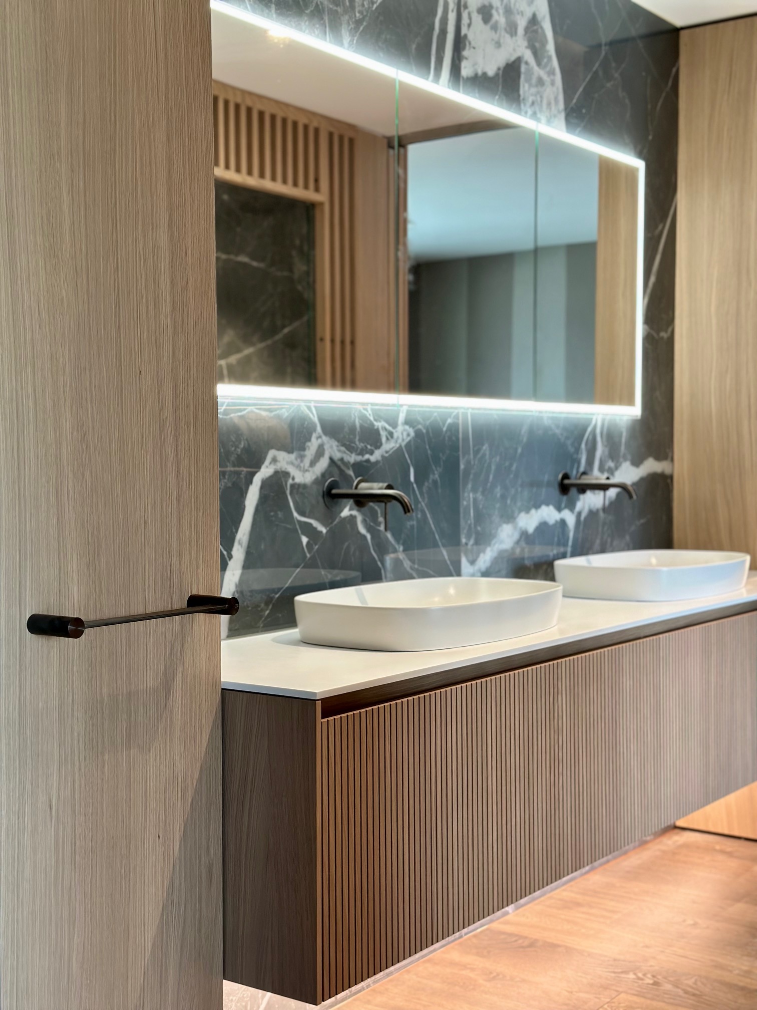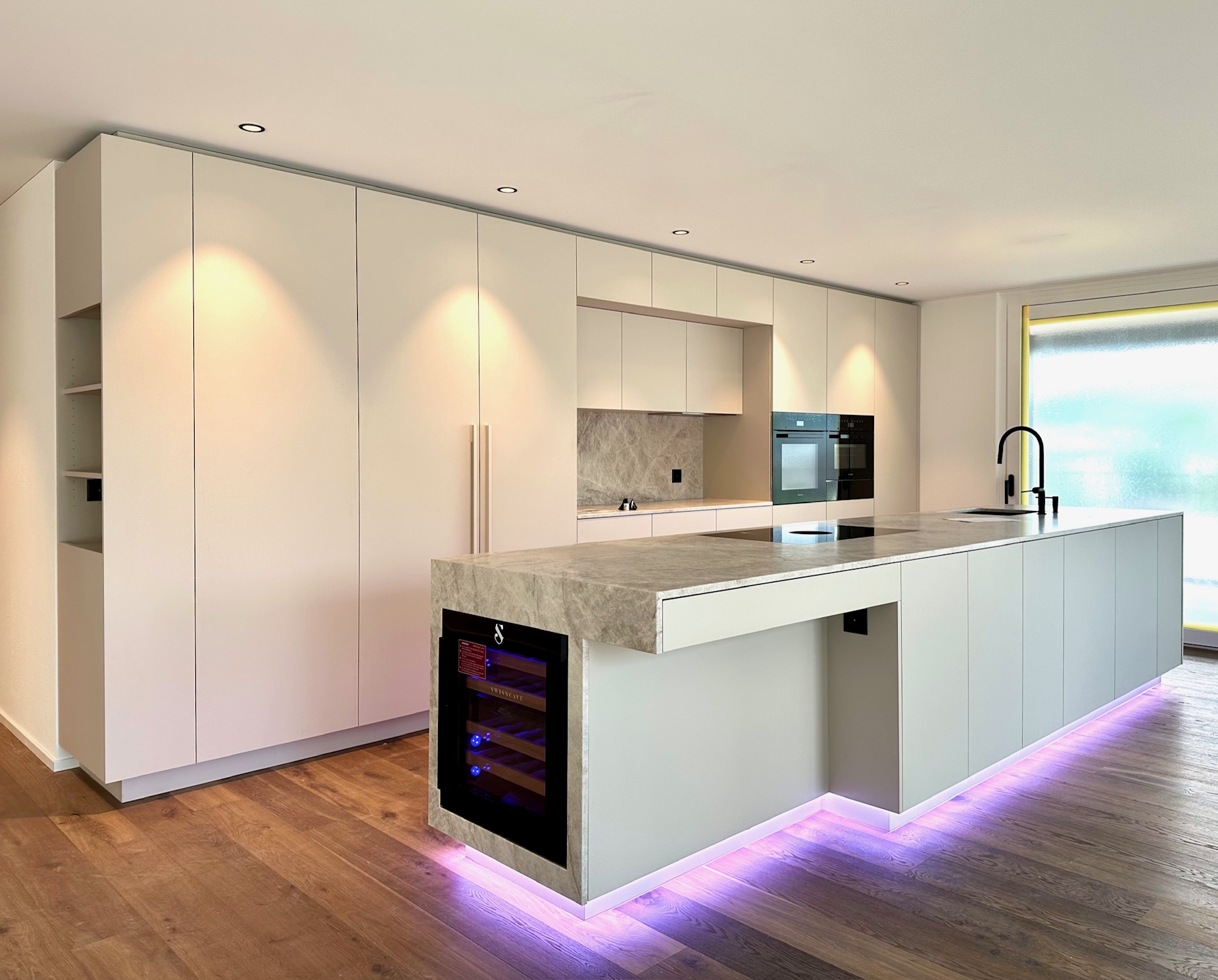 Unsere Projekte verbinden präzises Handwerk mit feinem Gespür fürs Wesentliche. Wir gestalten Räume, die nicht nur durch ihre klare Formensprache überzeugen, sondern durch Liebe zum Detail spürbar werden. Ihre Ideen treffen auf unsere Erfahrung – das Resultat: langlebige Unikate aus Massivholz, die Charakter zeigen und die Sinne ansprechen.