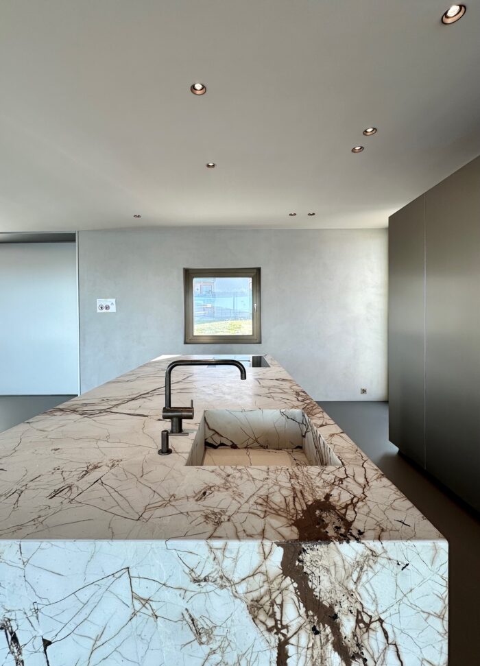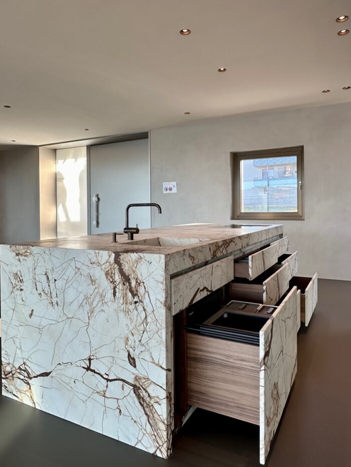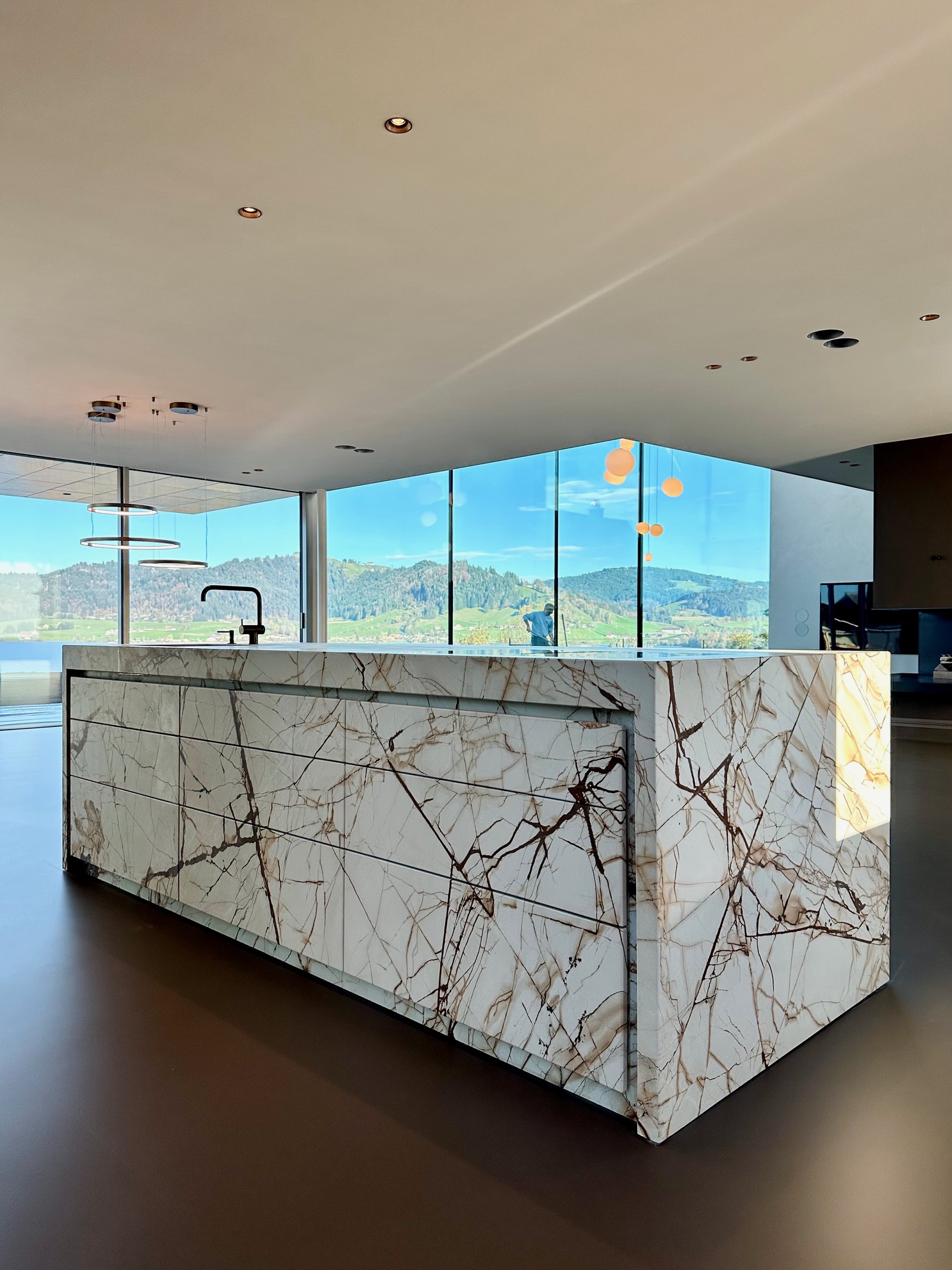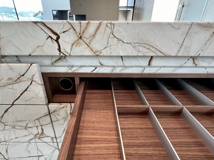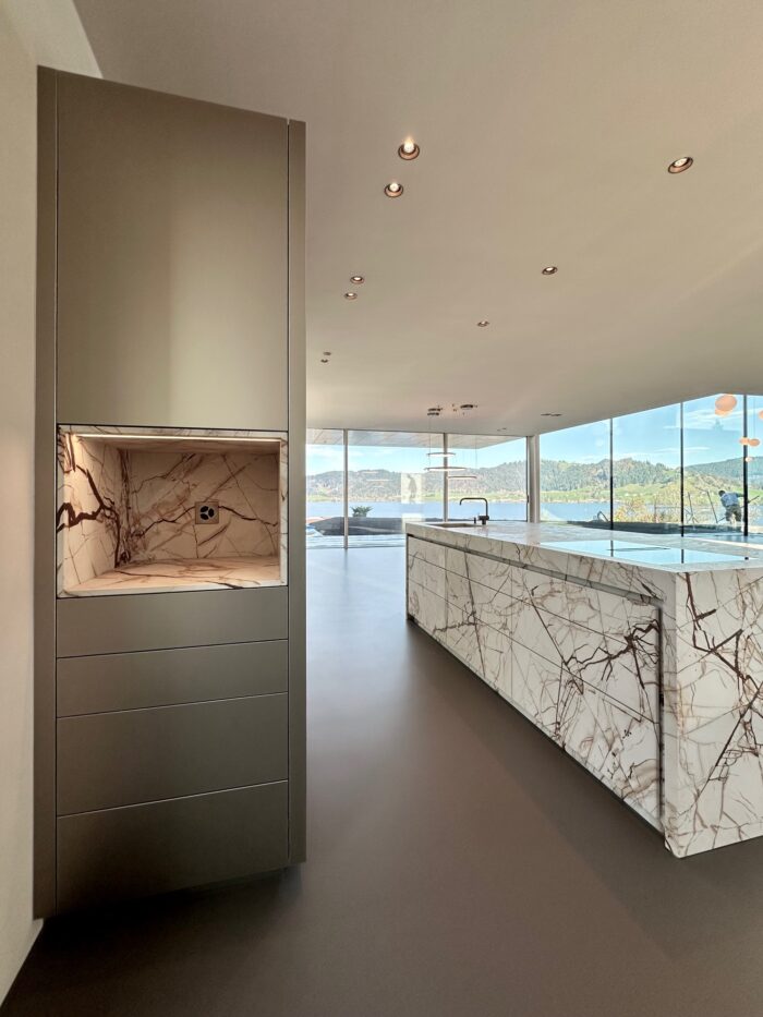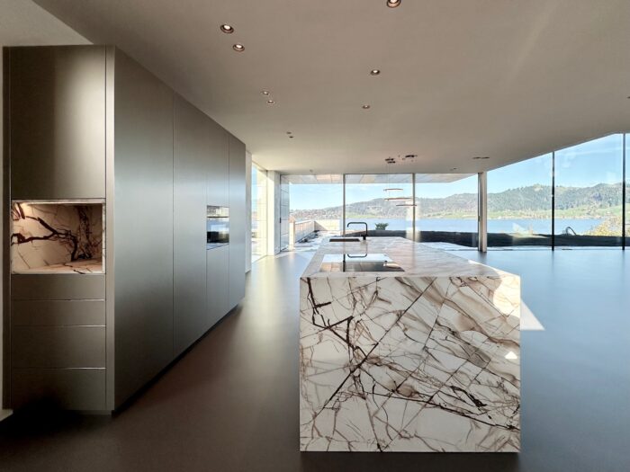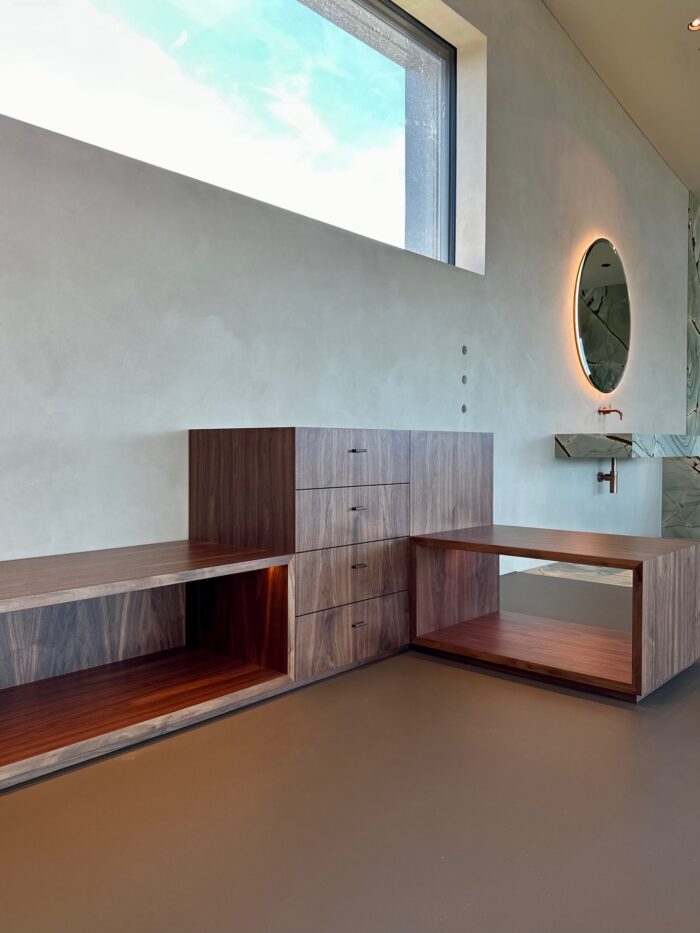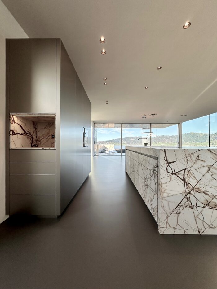 Zurück Neubau EFH UB6 Ausführung von Küche, BadmöbelMaterialien: Aluduro, AmiNussbaum, Naturstein Sahara-Gold, Messing brüniert Architektur: 2M ArchitekturPlanung & Ausführung: Weiss InnenausbauFotos: Reto Weiss