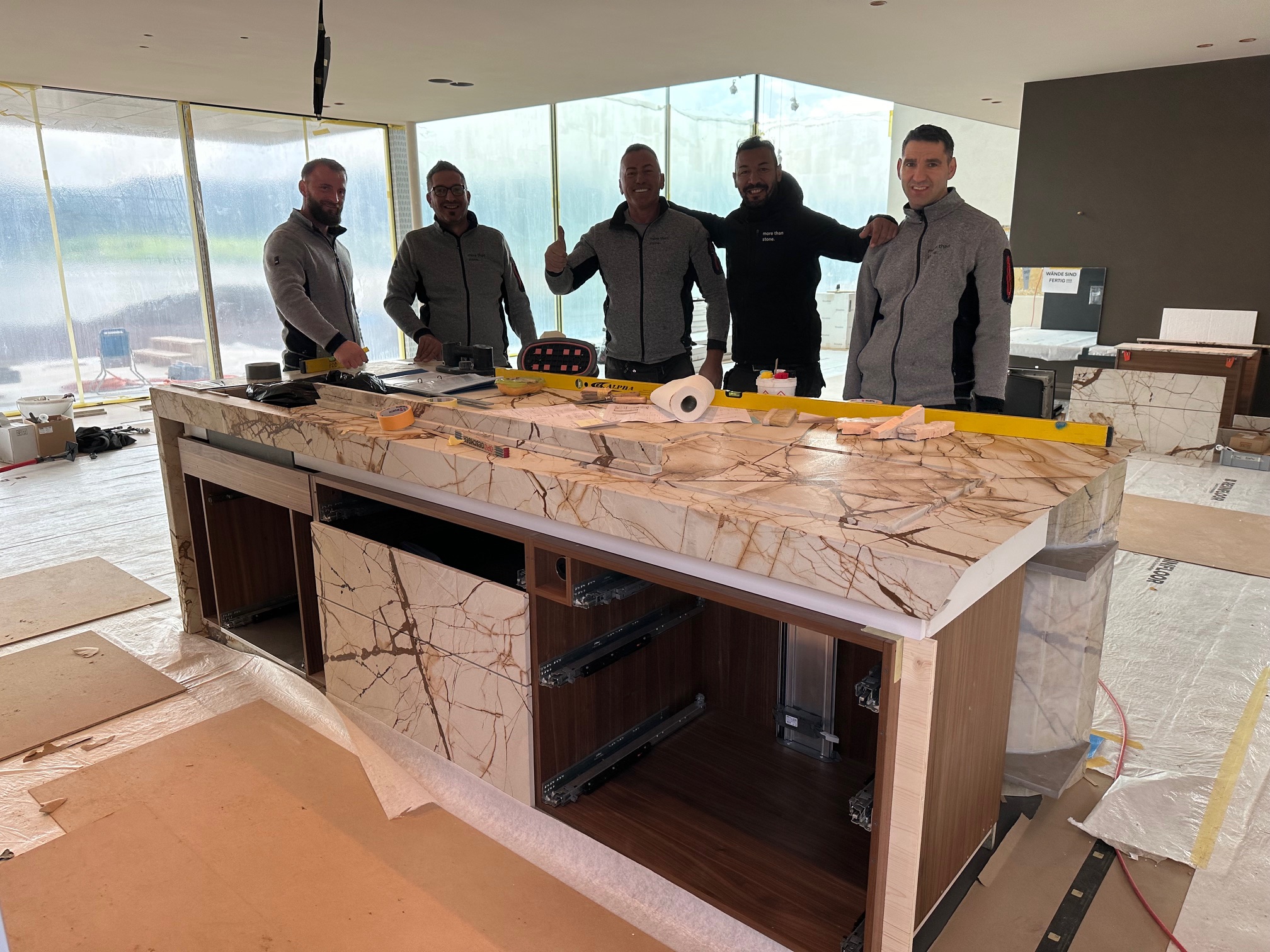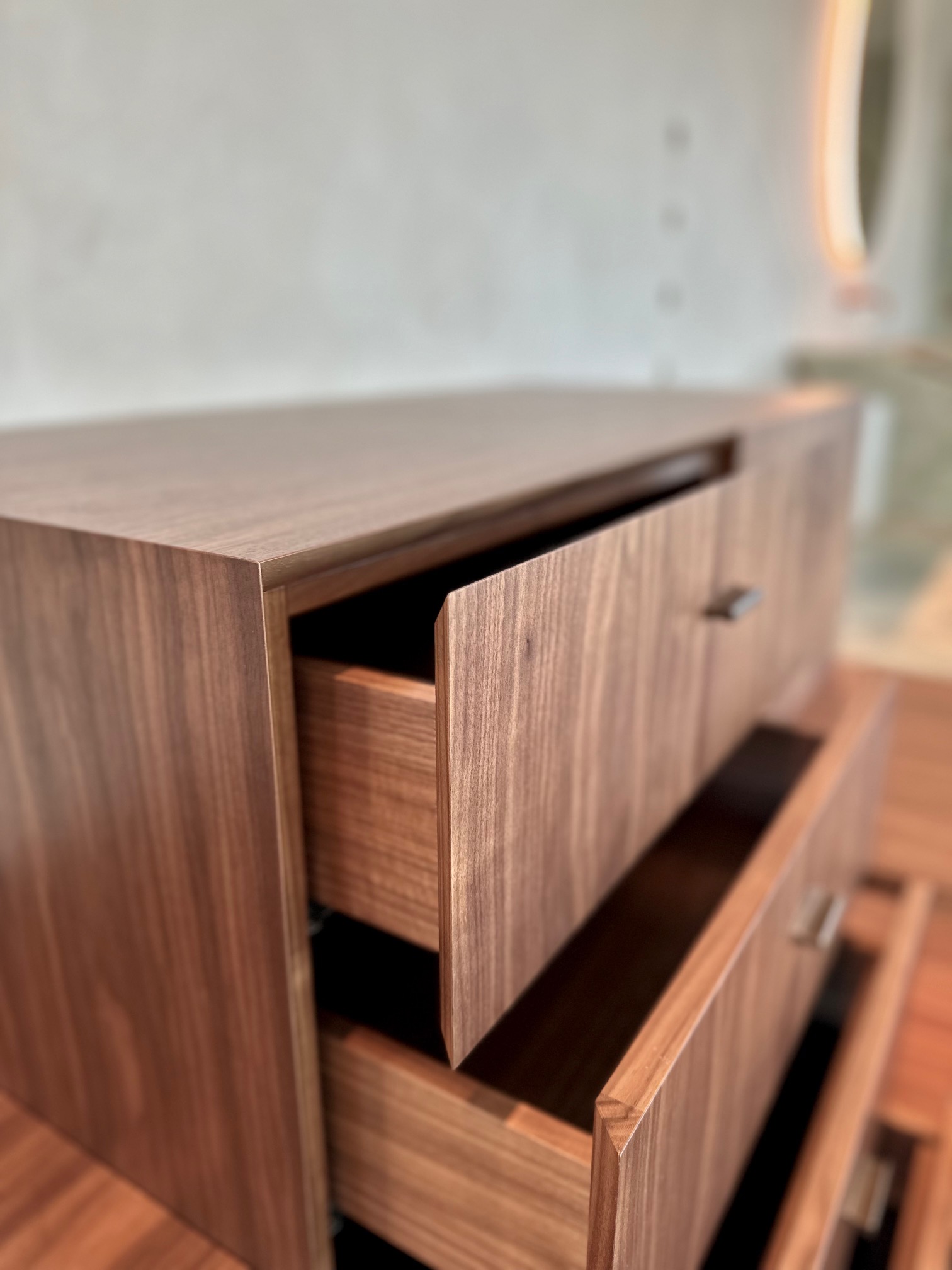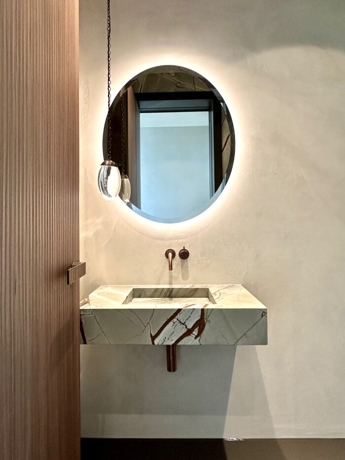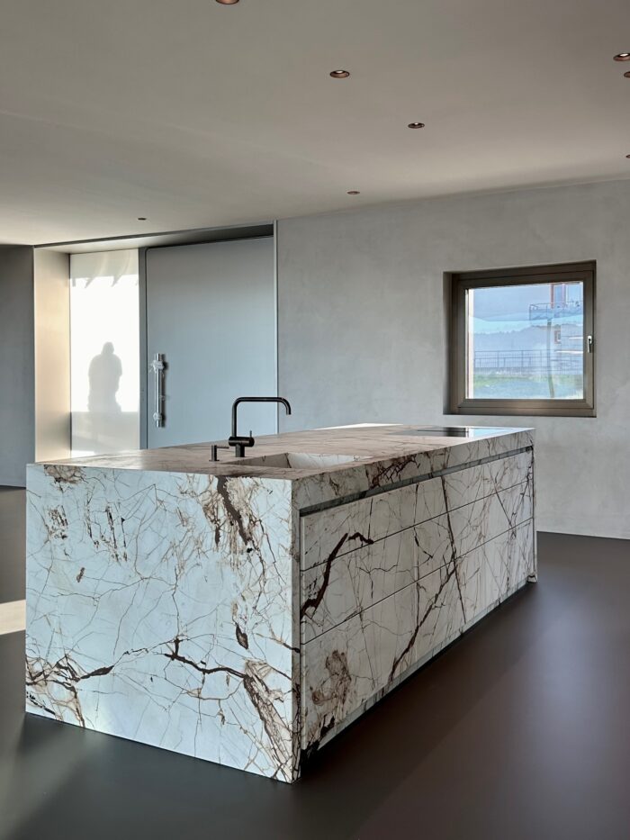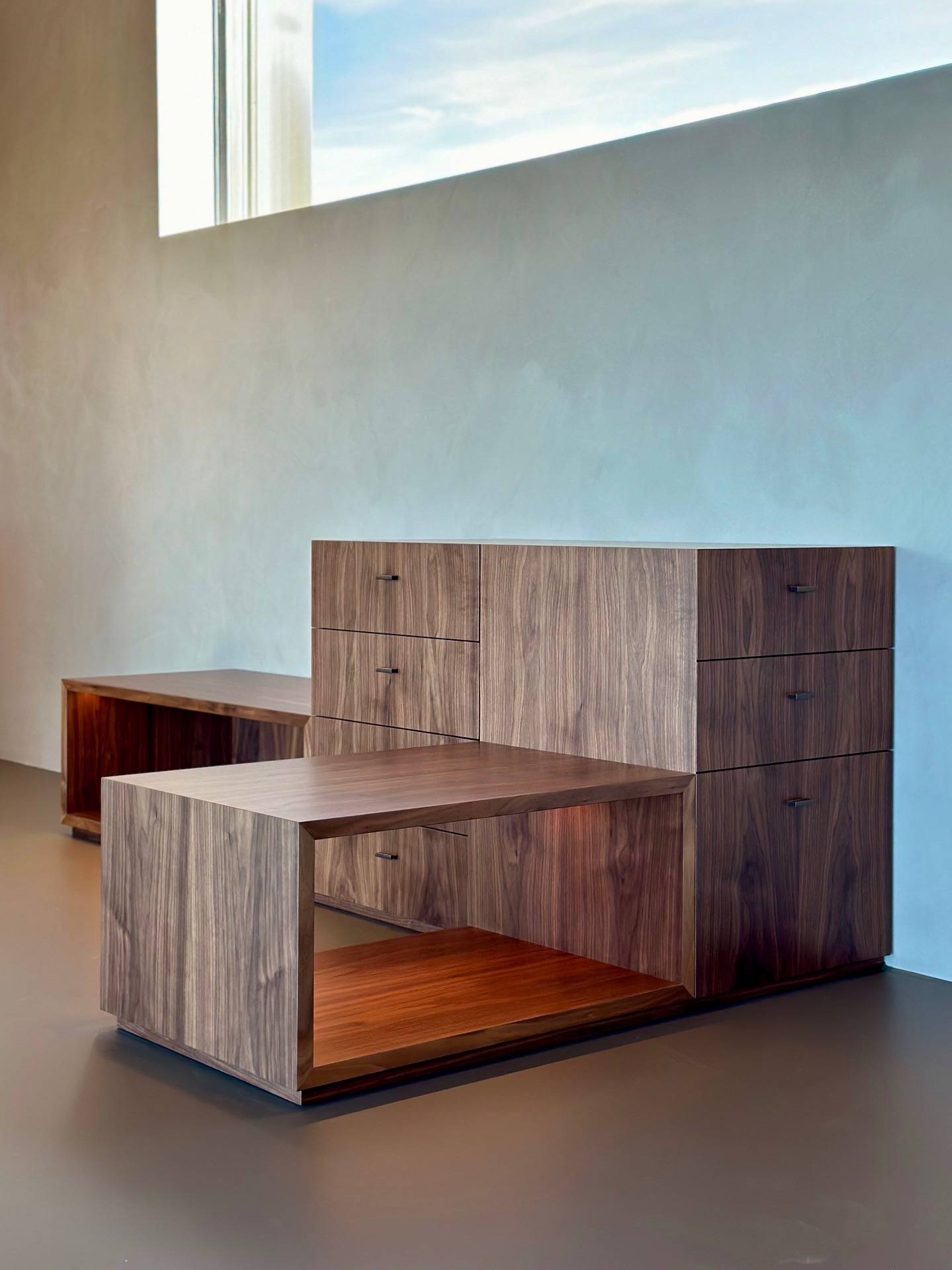 Zurück Neubau EFH UB6 Ausführung von Küche, BadmöbelMaterialien: Aluduro, AmiNussbaum, Naturstein Sahara-Gold, Messing brüniert Architektur: 2M ArchitekturPlanung & Ausführung: Weiss InnenausbauFotos: Reto Weiss
