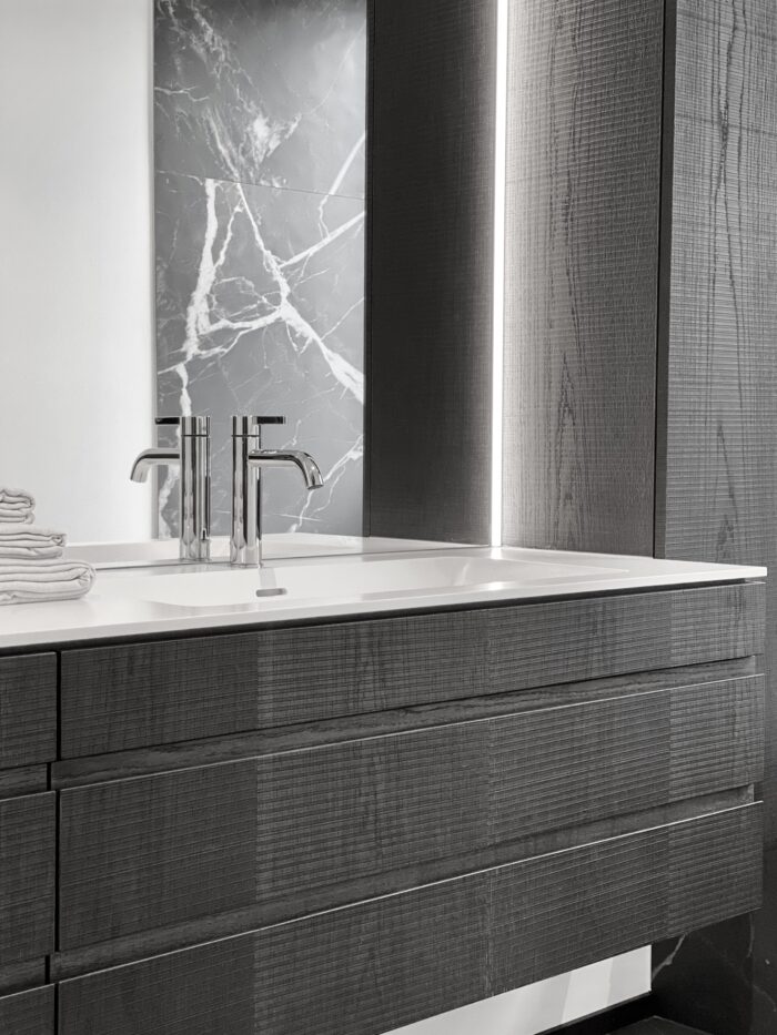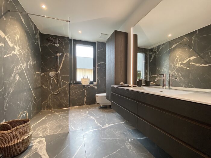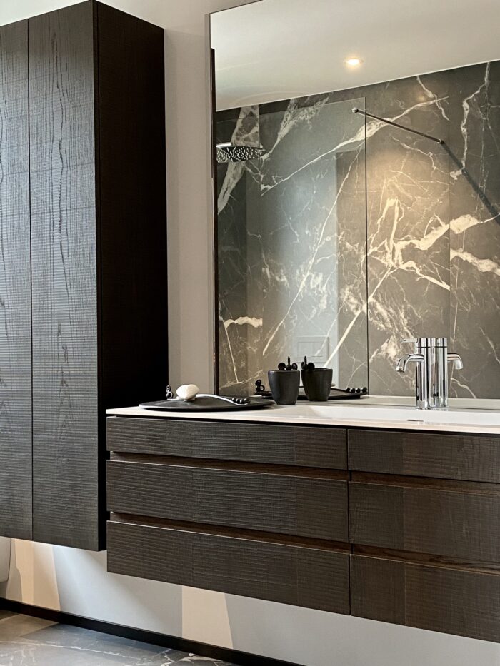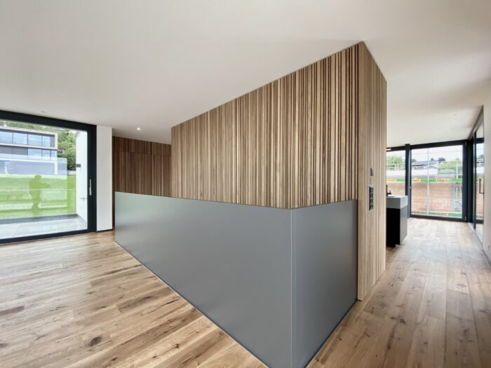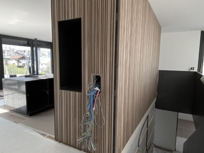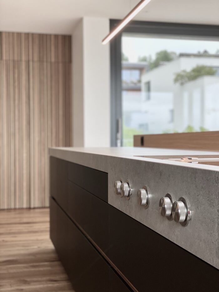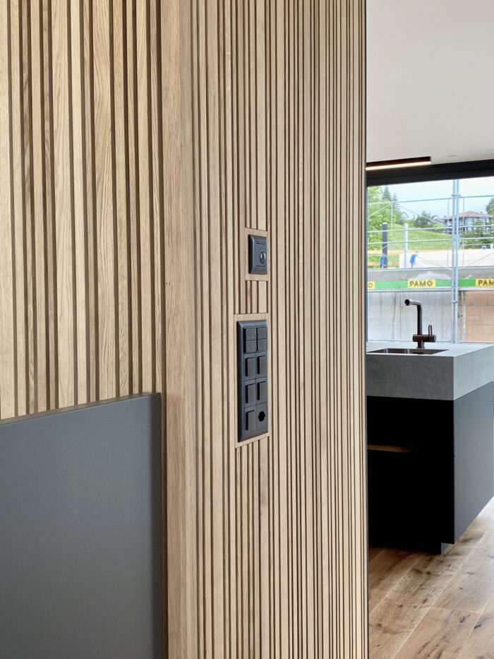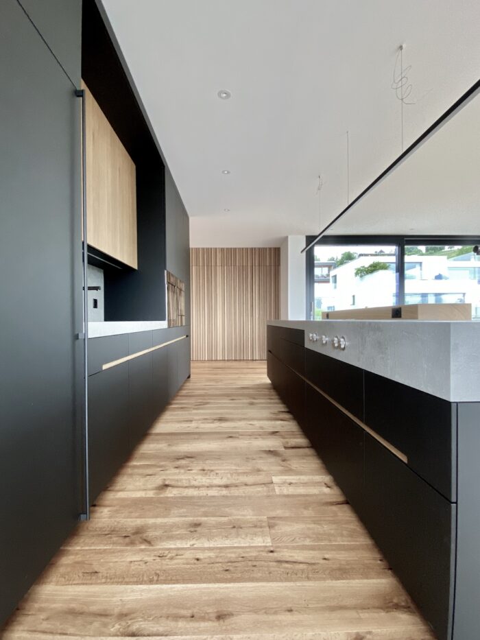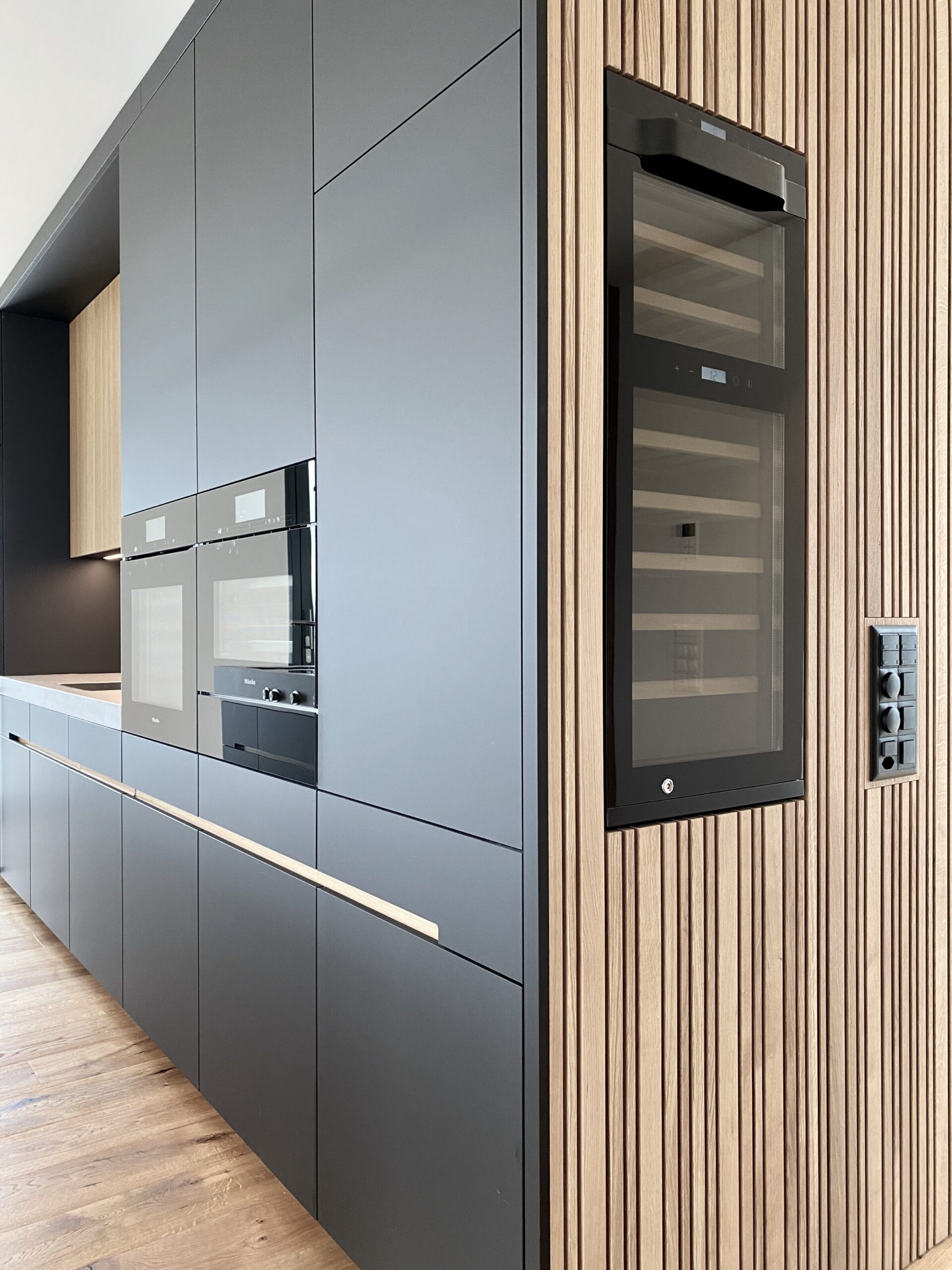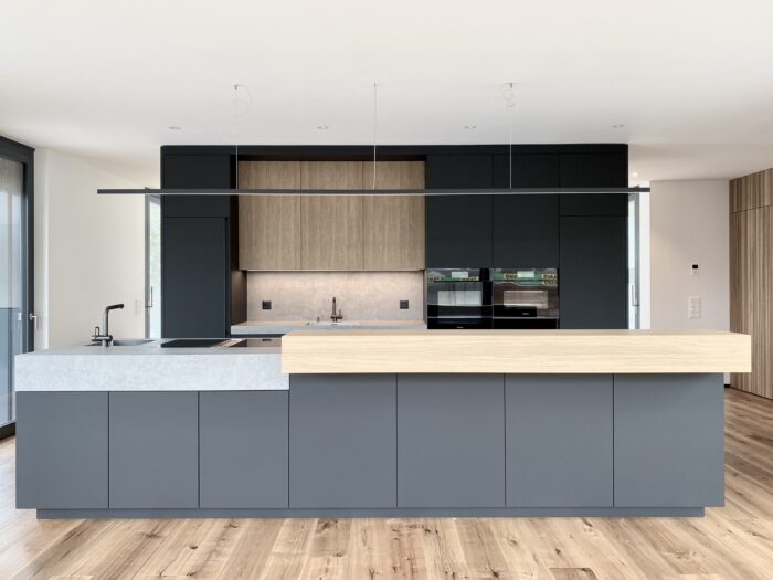 Zurück Neubau Haus BB9 Ausführung von Schränke, Bäder, KücheMaterial: Dekton, MDF Schleiflack, Fenix, Eiche. Architektur: Hatt Partner AGEntwurf: weiss innenausbau agFotos: Reto Weiss