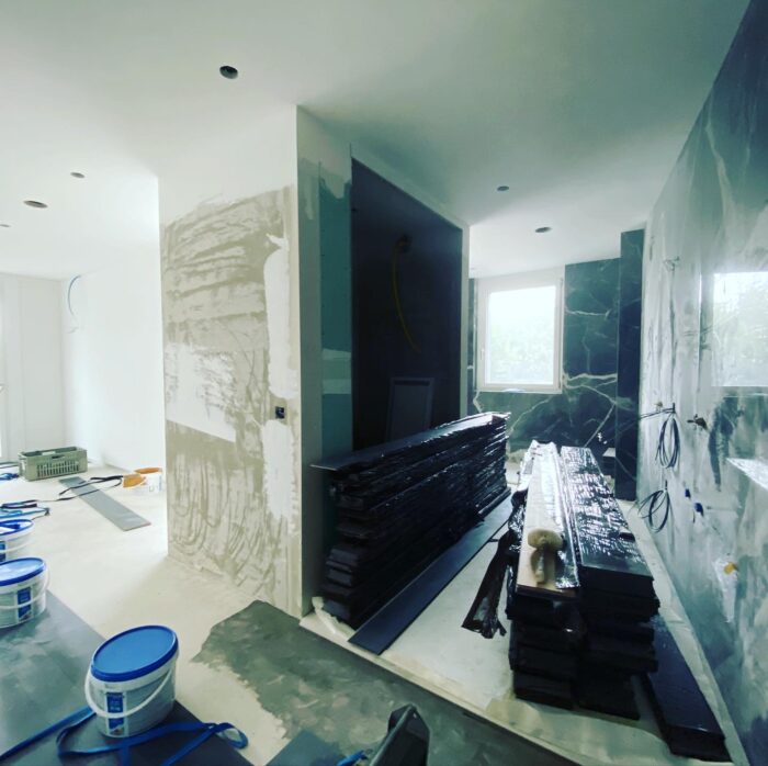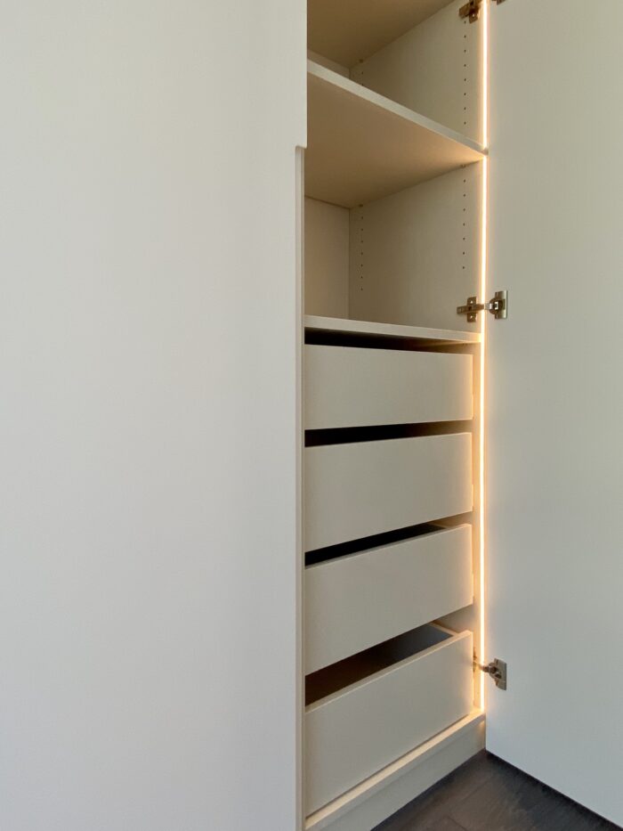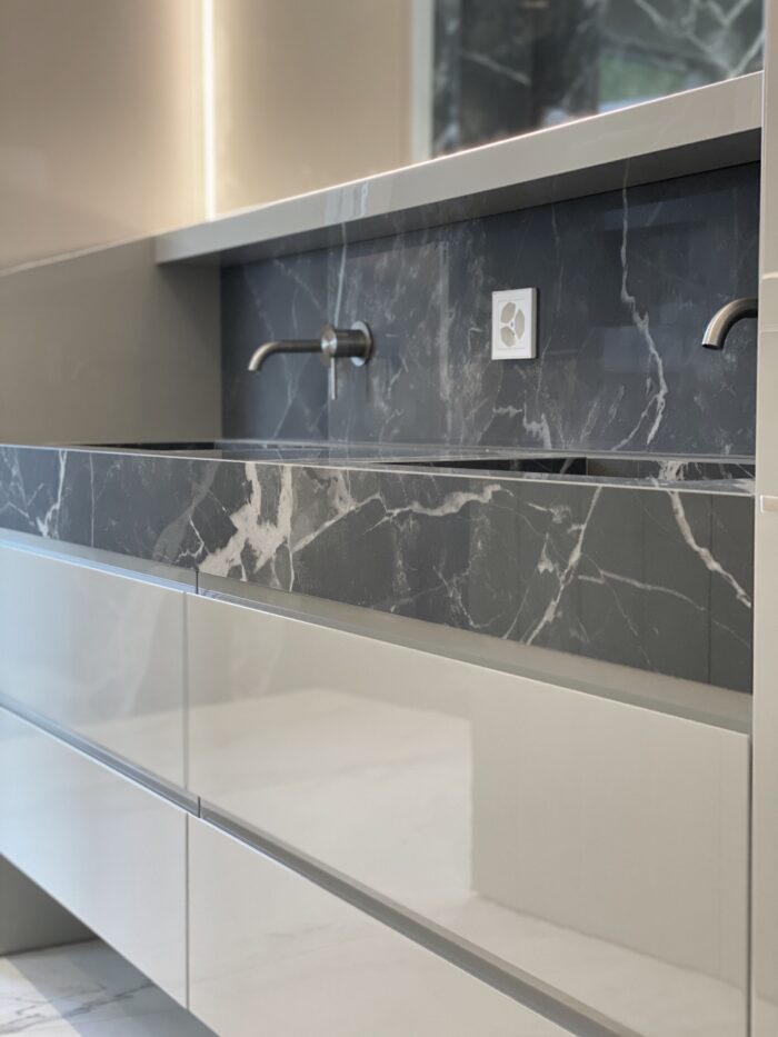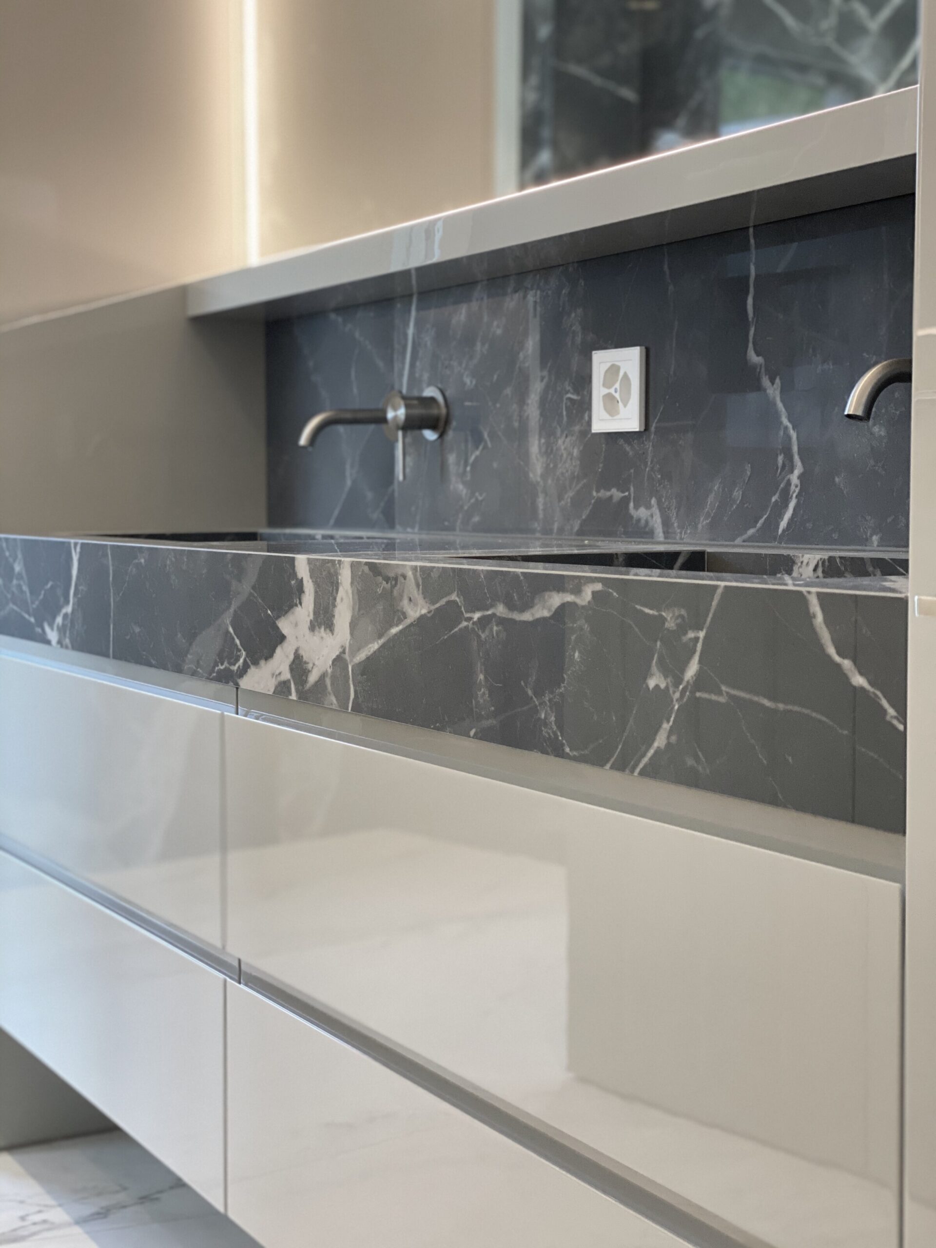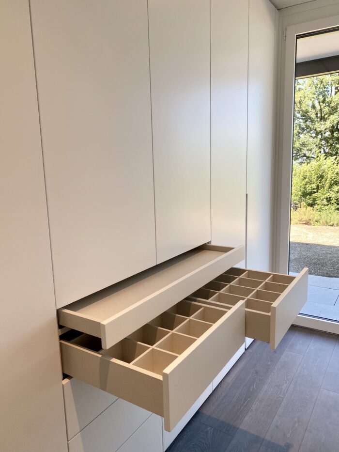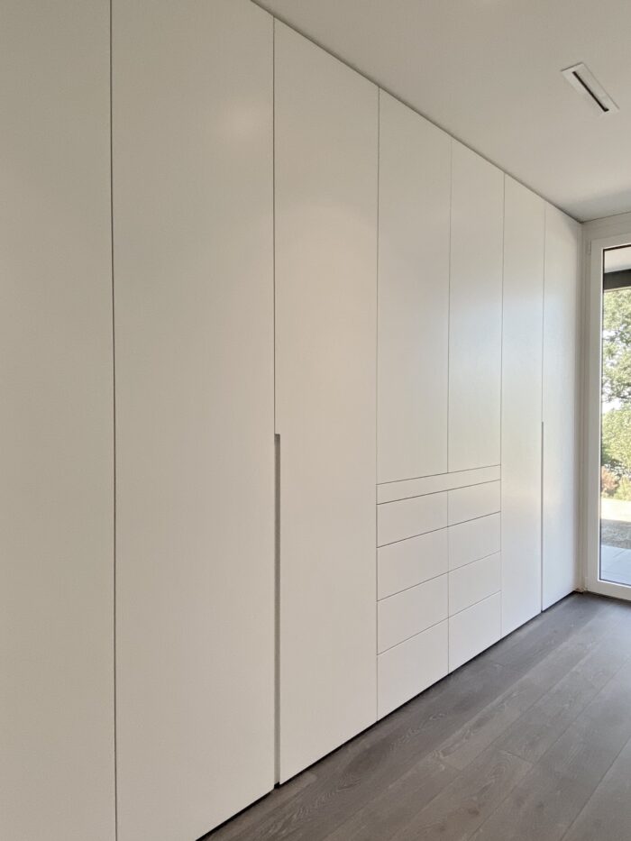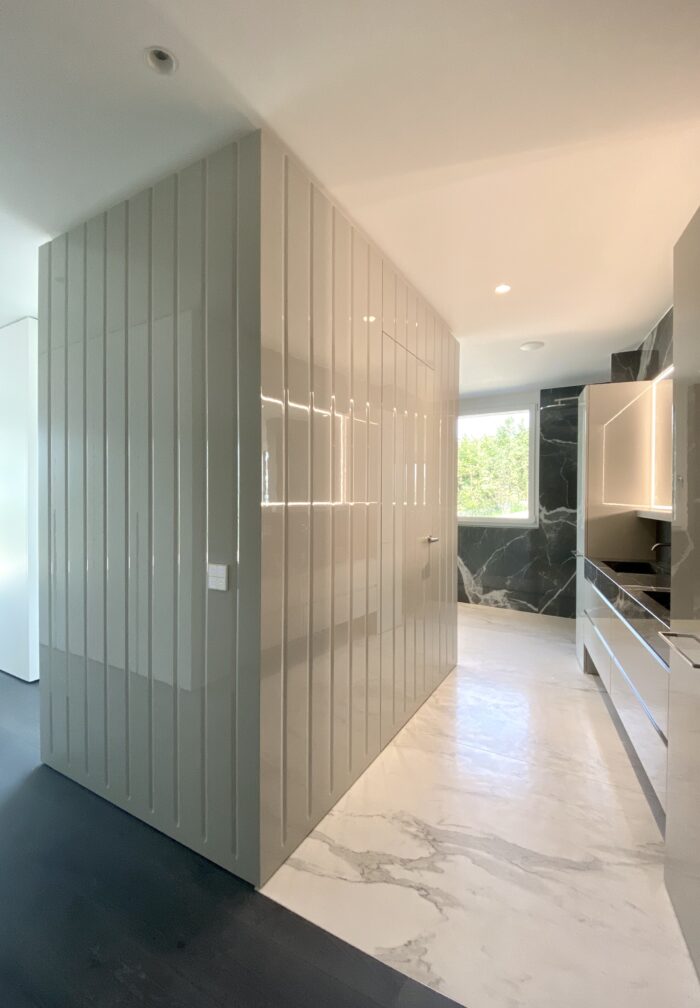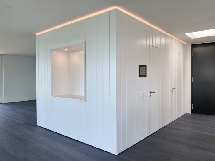 Zurück Neubau Haus W Ausführung von Schränke, Bäder, EinbautenMaterial: Feinsteinzeug, MDF Schleiflack/Hochglanz. Entwurf: Kalfopoulus, weiss innenausbau agFotos: Reto Weiss