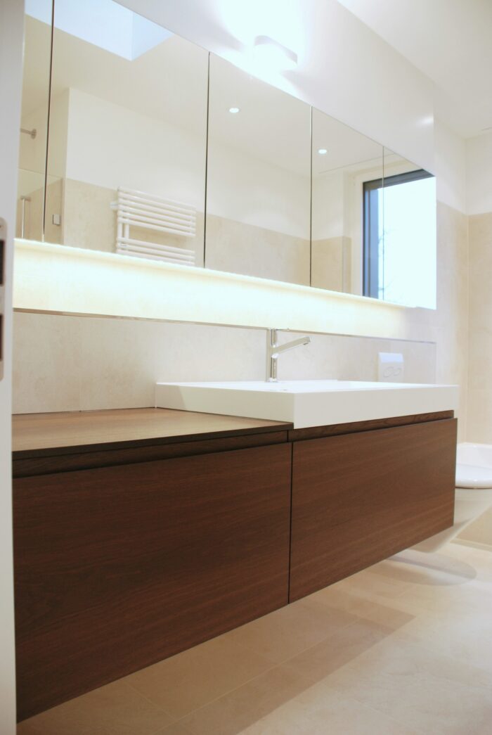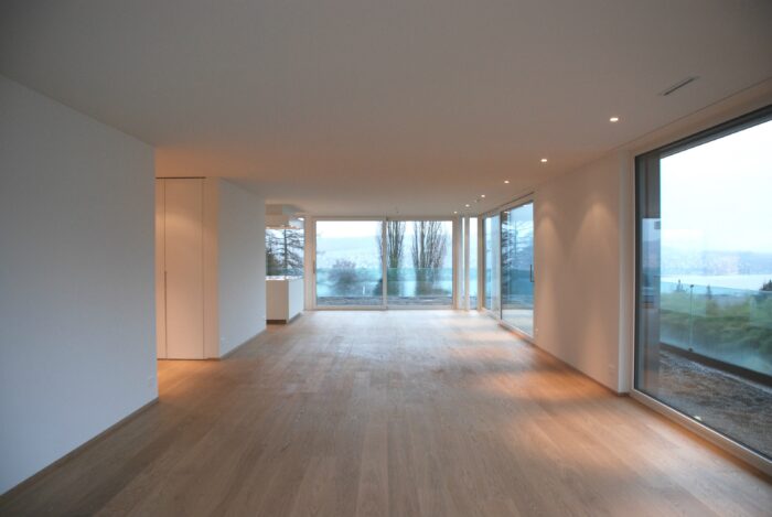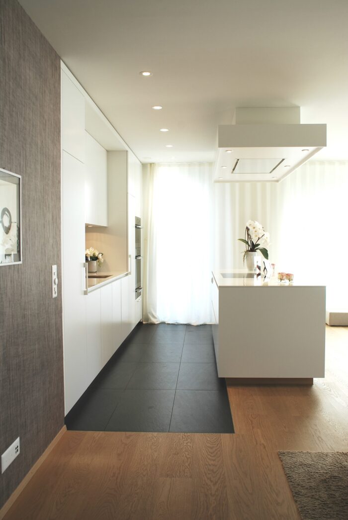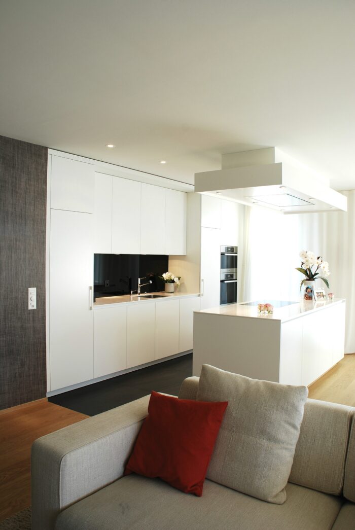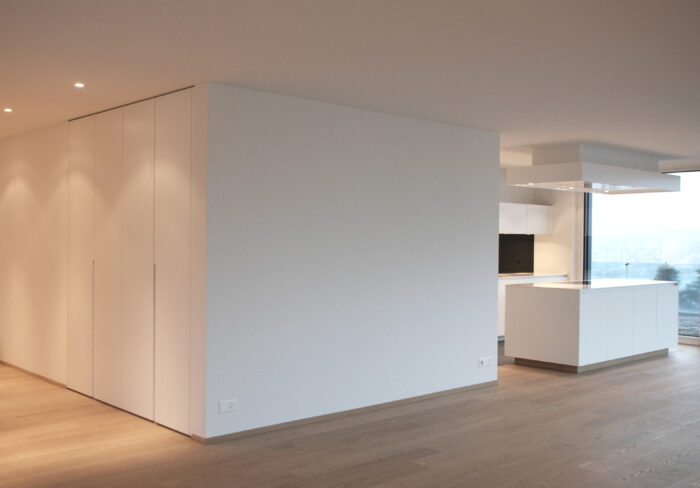 Zurück Neubau Mehrfamilienhaus Thalwil Ausführung der Küchen, Badmöbel, Schränke und GarderobenMaterial: Mineralwerkstoff, Räuchereiche, MDF Schleiflack, Silestone Entwurf: Reto WeissArchitektur: Hatt und Partner AGFotos: Reto Weiss