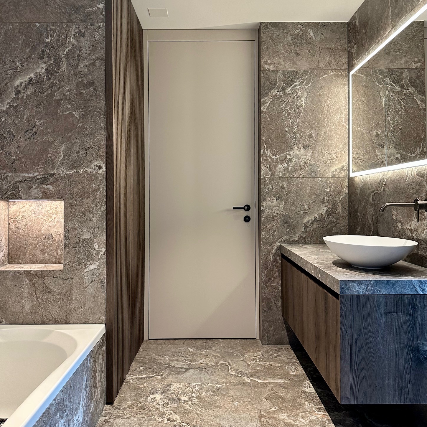 Zurück Neubau MFH FIS Au-Wädenswil Konzept und Ausführung von Küche, BäderMaterial: Fenix HPL, Eiche Mondsee, Naturstein, Corian Architektur: Hatt Partner AGDesign, Planung & Ausführung: Weiss InnenausbauFotos: Reto Weiss