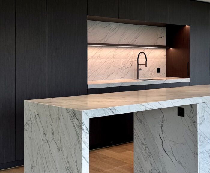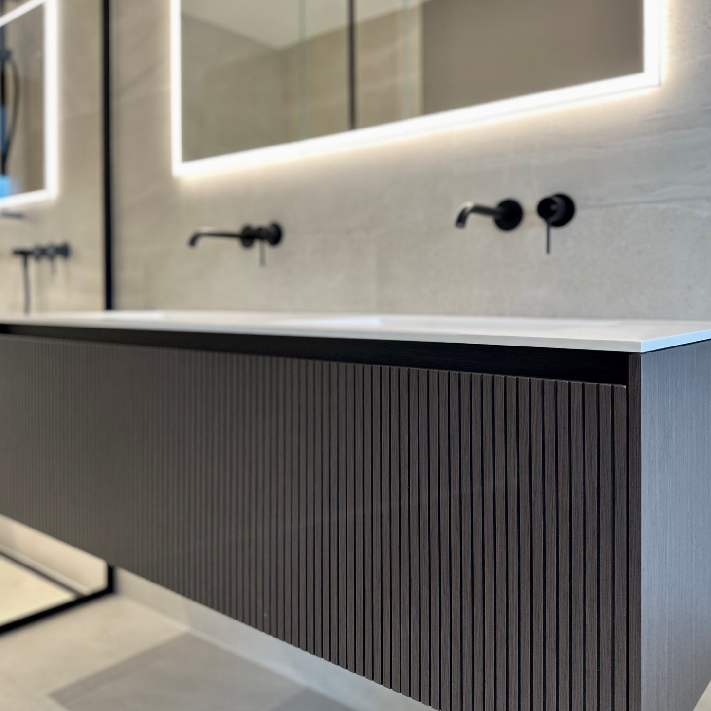 Material: MDF Schleiflack, Naturstein, Alpi Furnier, Corian