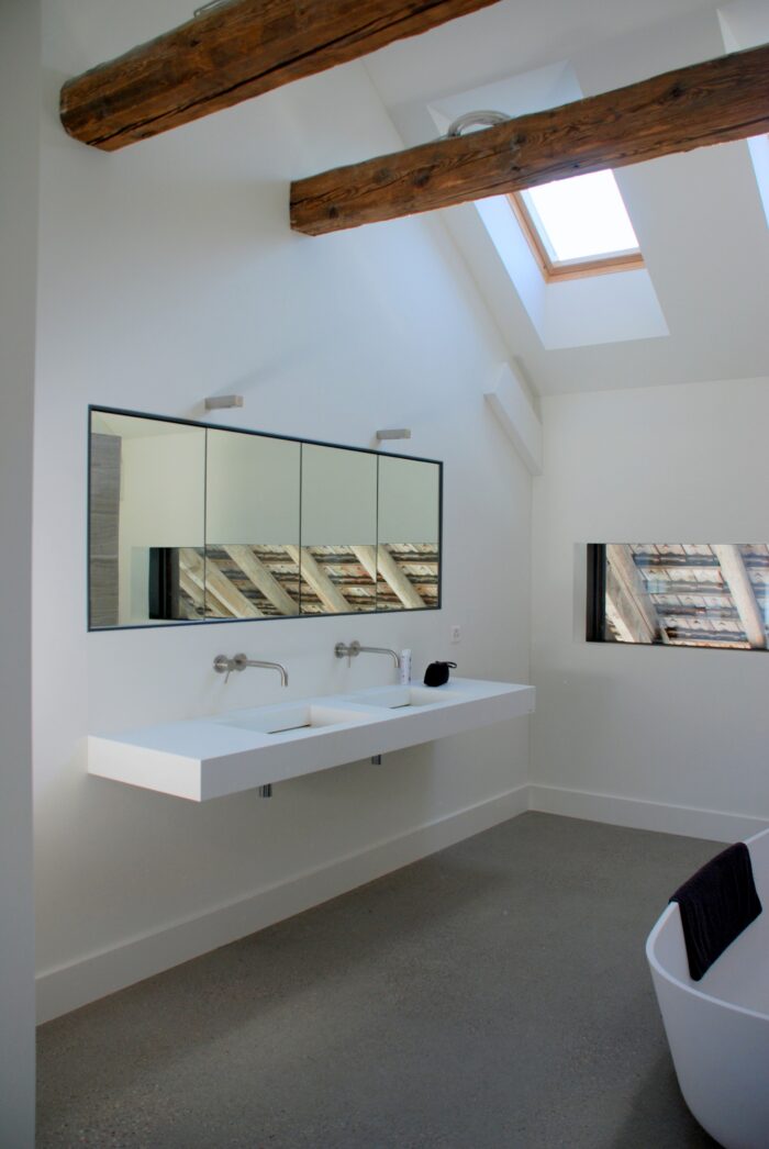 Zurück Renovation/Umbau Bauernhaus und angrenzender Stall RS Ausführung der Garderoben, Schränke und BadmöbelMaterial: Räuchereiche, Mineralwerkstoff Entwurf: Bauherrschaft, Reto WeissFotos: Reto Weiss