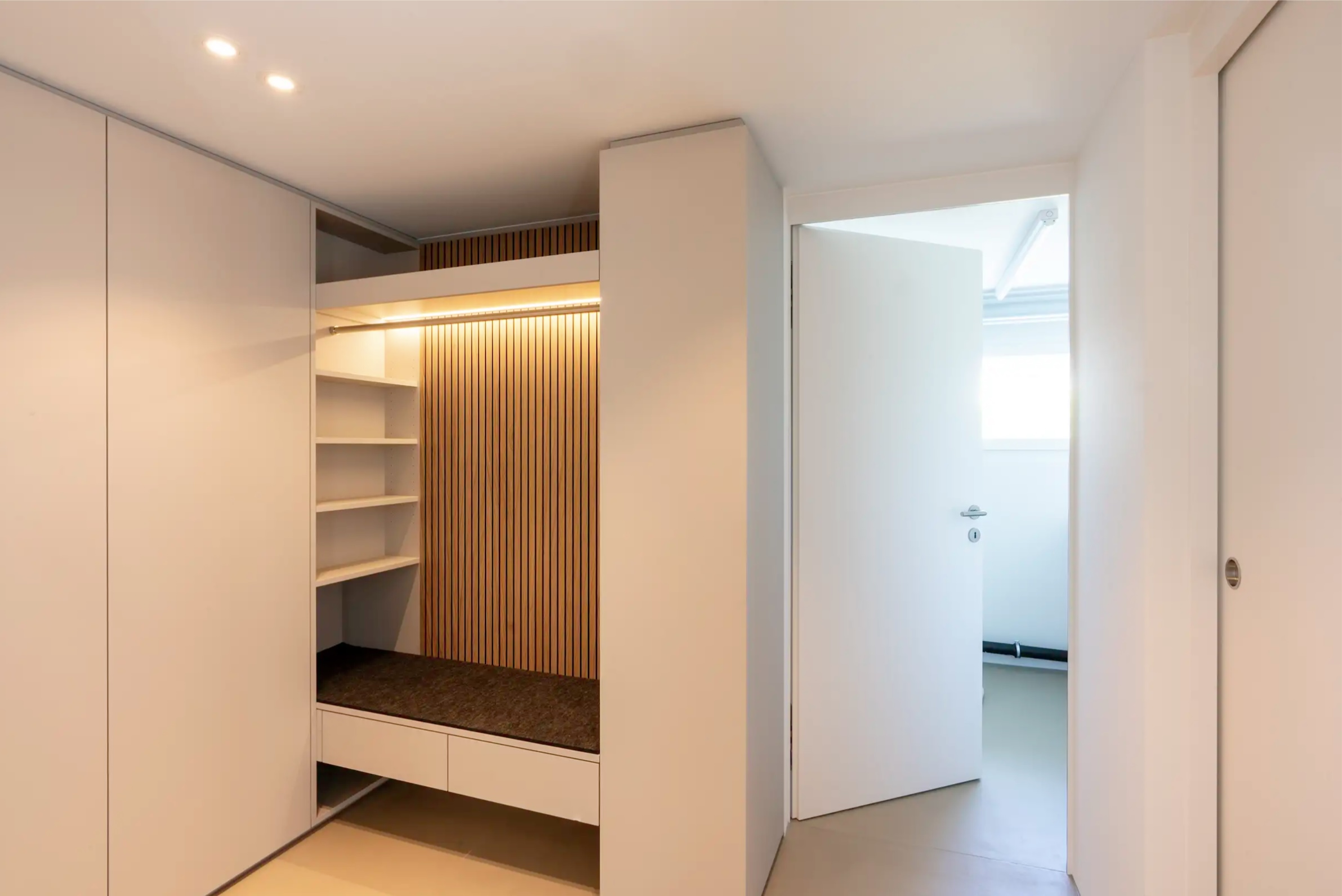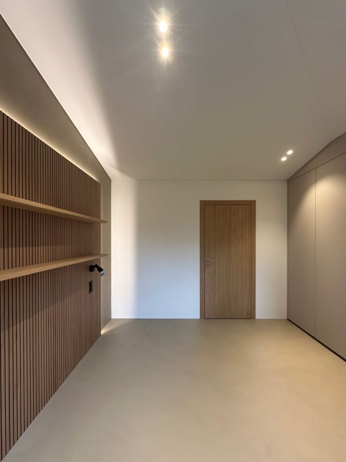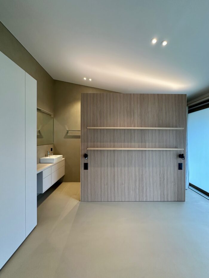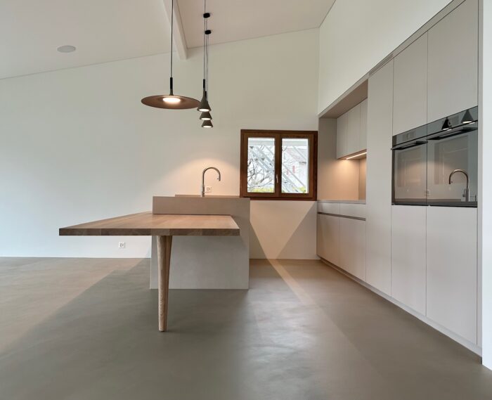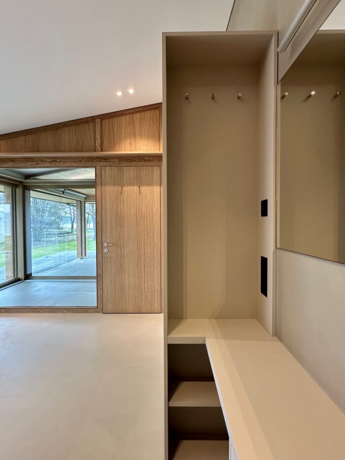 Zurück Sanierung Haus am See Ausführung von Küche, Bäder, Ankleiden, Garderobe, Türen und MöblierungMaterial: Egger Perfect Sense, Eichenholz Architektur: 2M ArchitekturPlanung & Ausführung: Weiss InnenausbauFotos: Reto Weiss